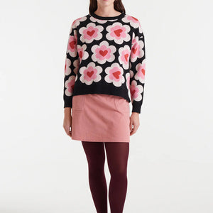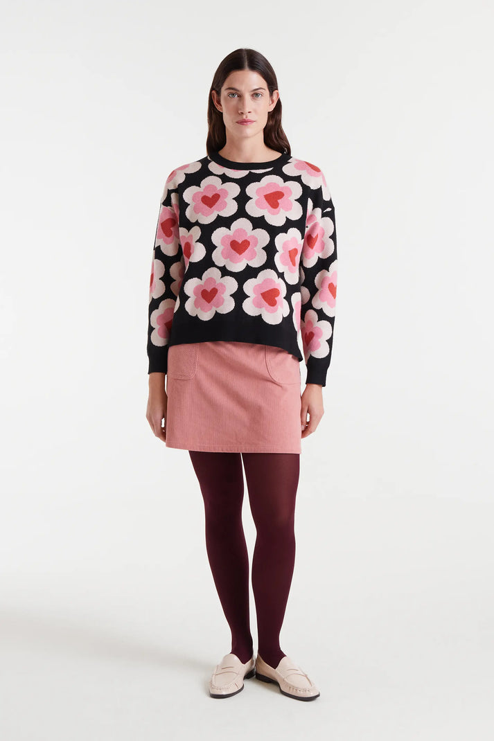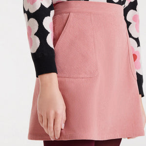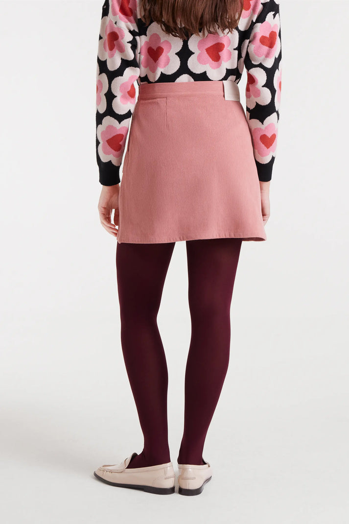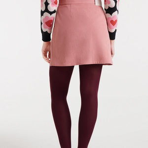 Gonna corta in velluto a coste verde.
