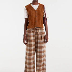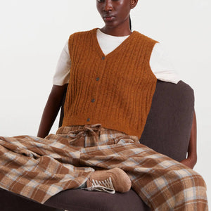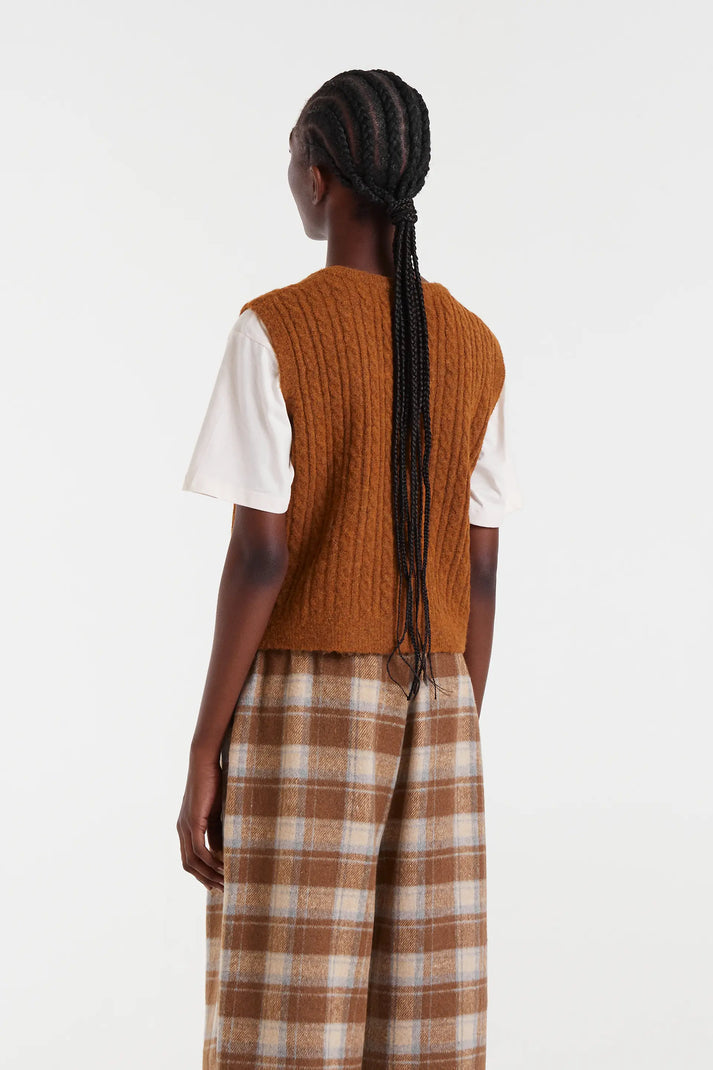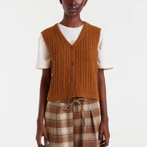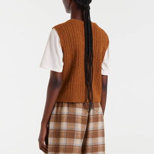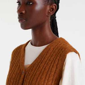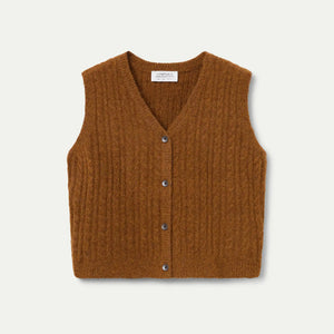 Gilet marrone in maglia con scollo a V e design senza maniche.