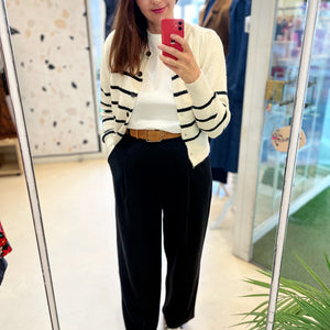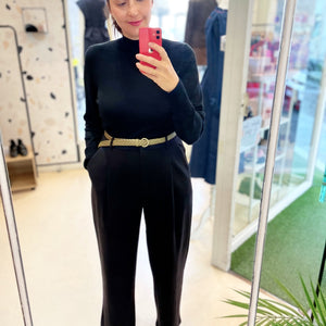I pantaloni a gamba larga offrono una vestibilità comoda, vita alta e una finitura sartoriale pulita. Il design senza cuciture e la silhouette a tutta lunghezza creano un look versatile e senza tempo, perfetto sia per il lavoro che per le occasioni informali.