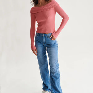 MAGLIONCINO ROSA CON SCOLLO A BARCA