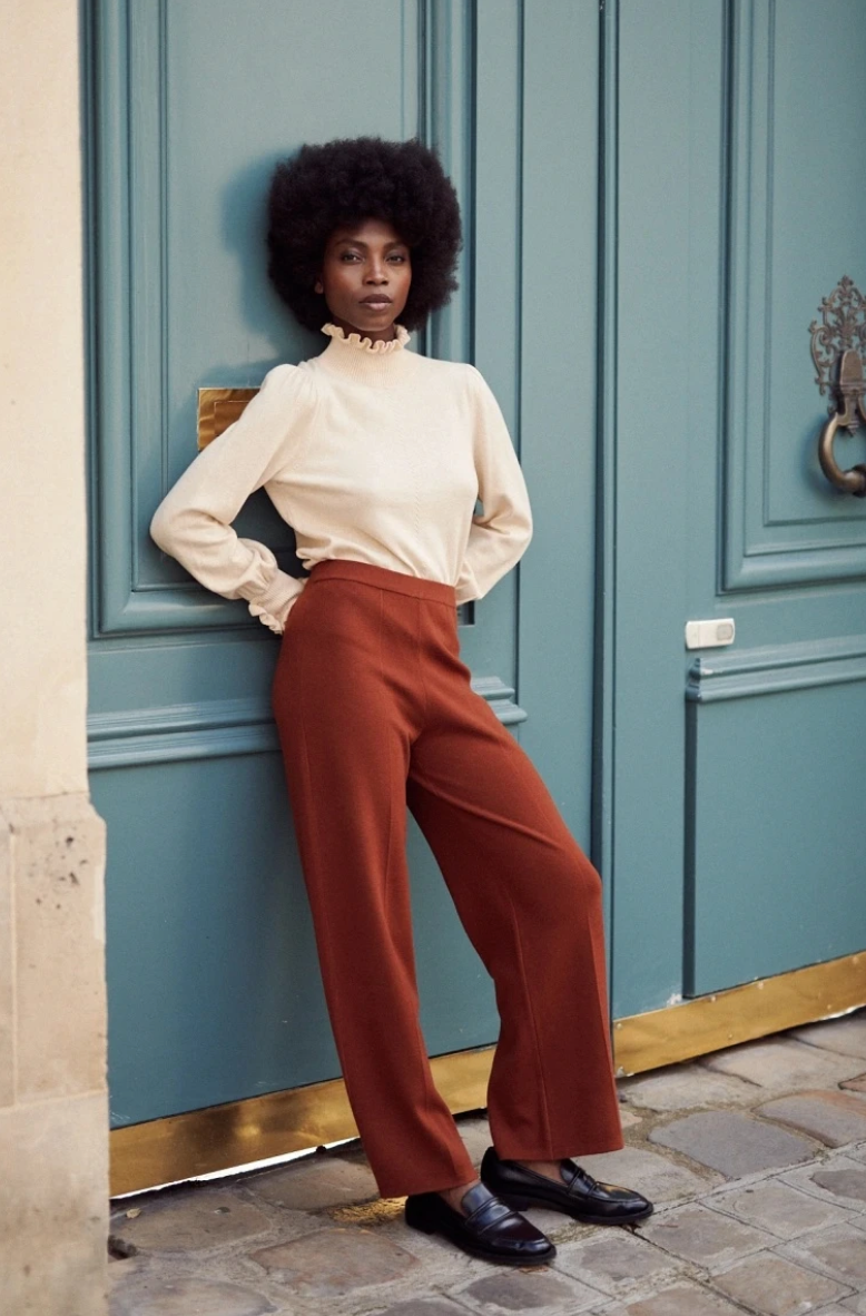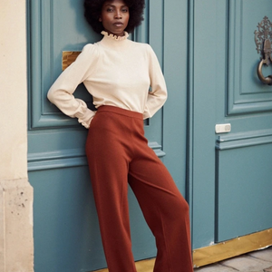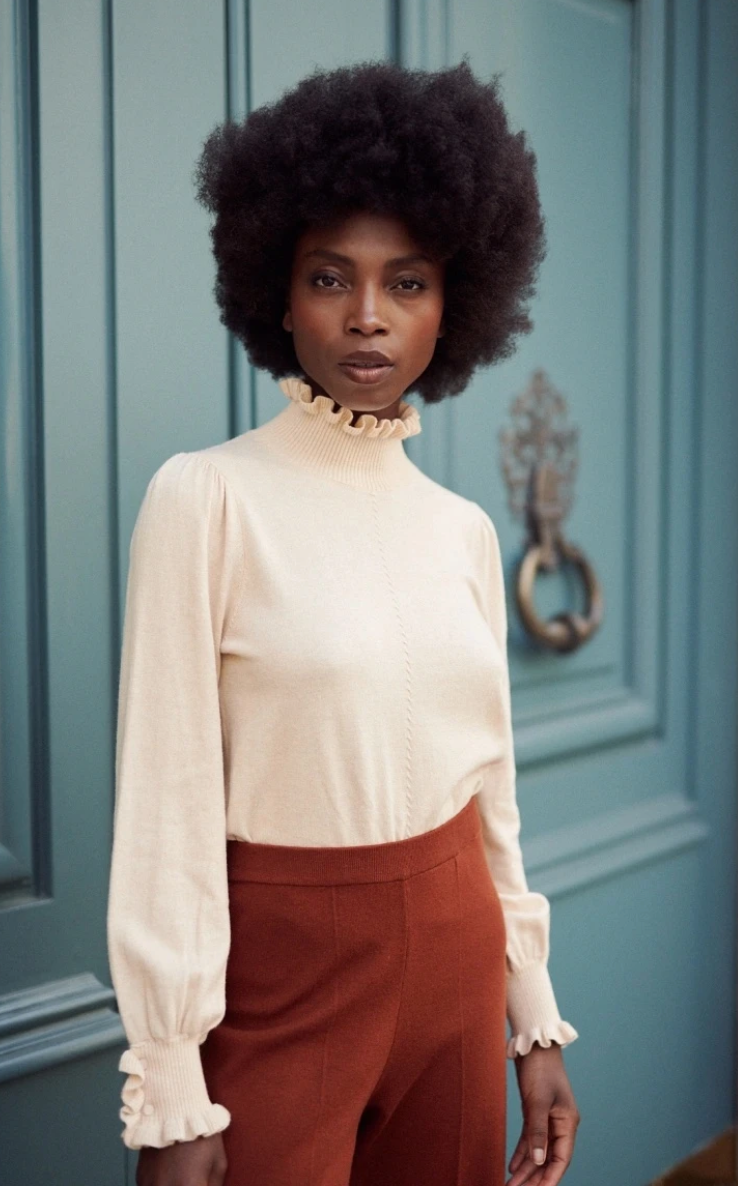Modello con rouges sul collo e sui polsini.