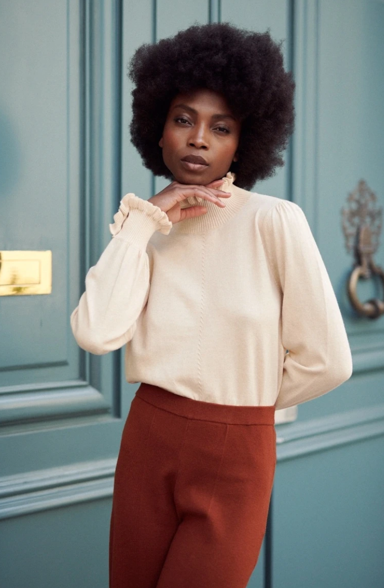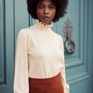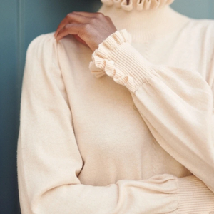 Dolcevita a collo alto color crema.