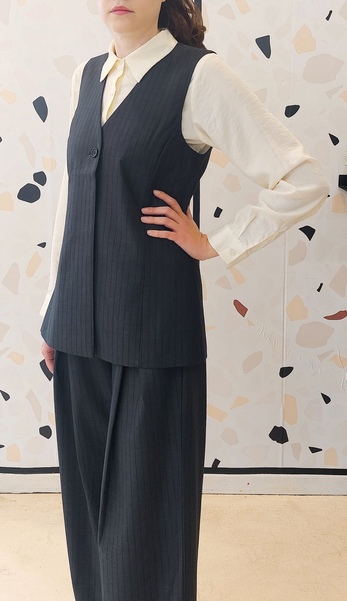 Fai risaltare ogni outfit con il gilet Davida 4421. Progettato con una vestibilità sartoriale e linee pulite, questo gilet fonde uno stile moderno con un'eleganza senza tempo. Realizzato in un raffinato misto poliestere-viscosa, offre comfort e struttura, mentre la chiusura a bottone singolo aggiunge un elegante tocco finale. - Vestibilità sartoriale