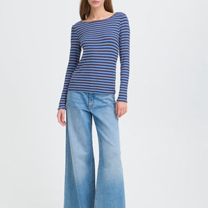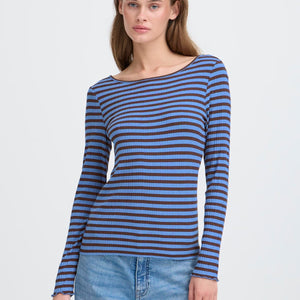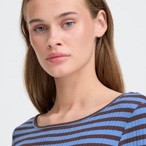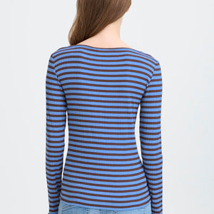 MAGLIA A COSTE BLU E MARRONE