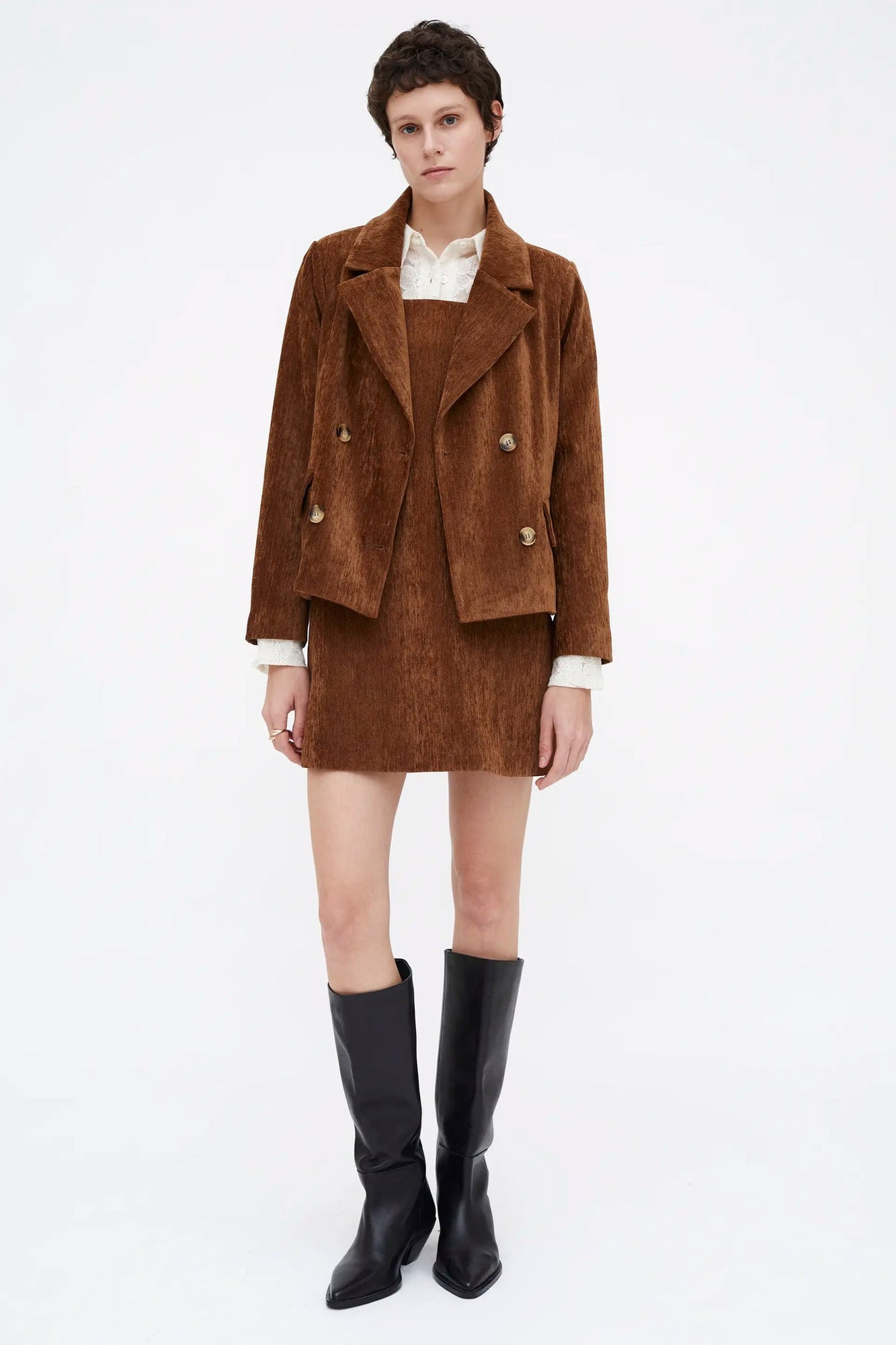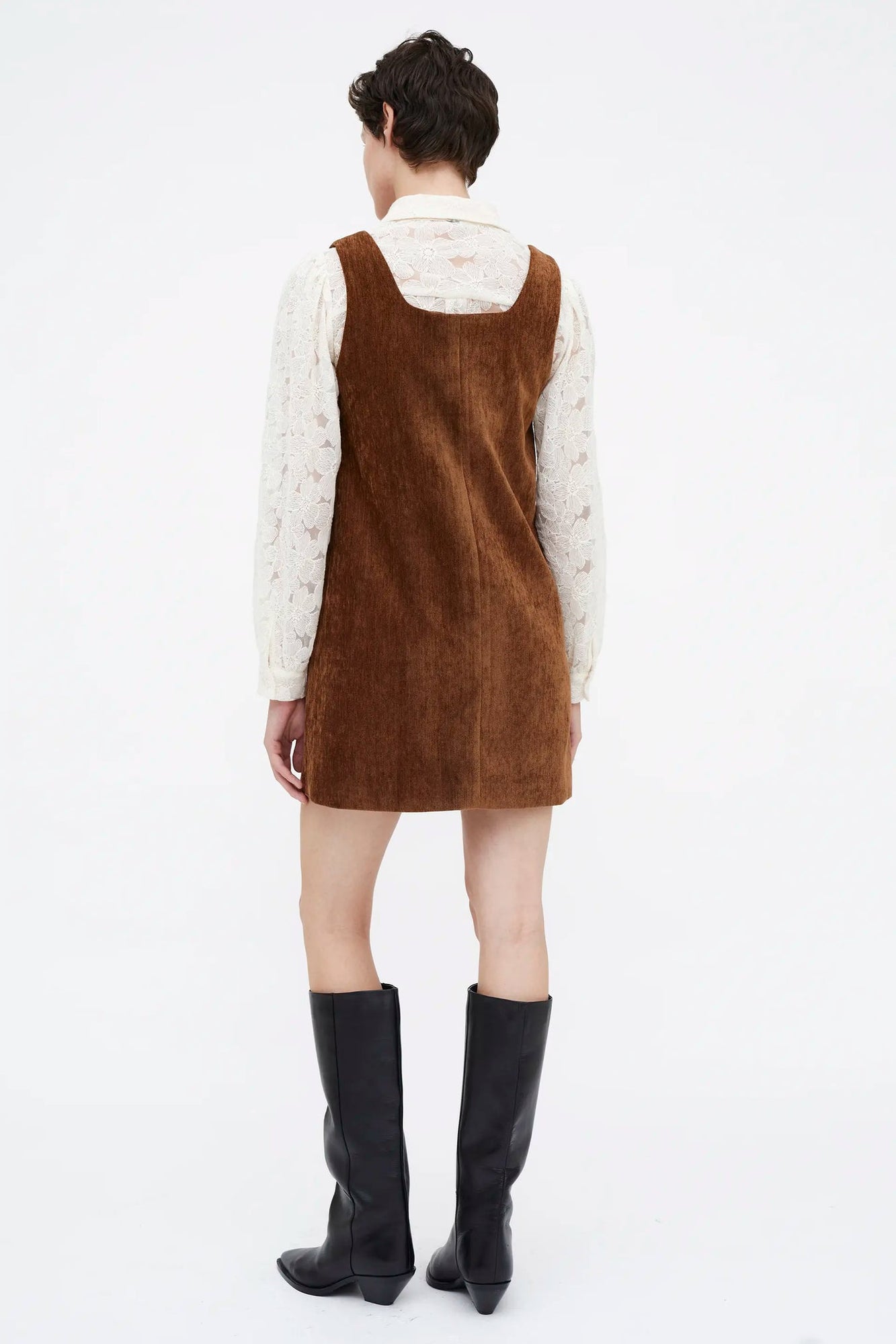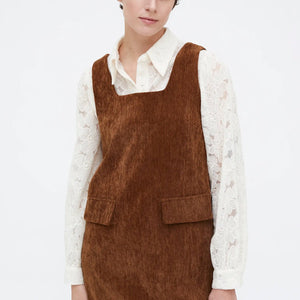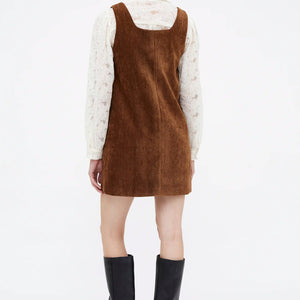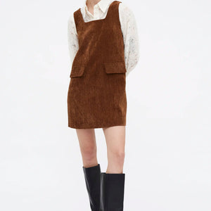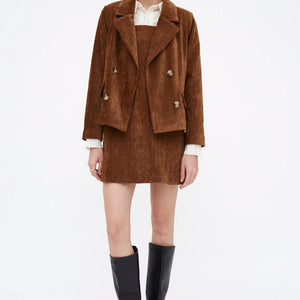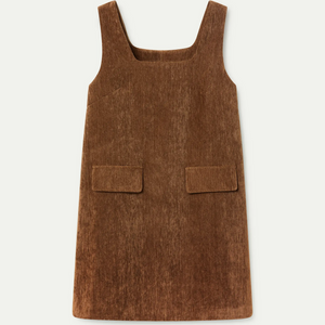 Abito corto marrone effetto velluto.