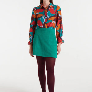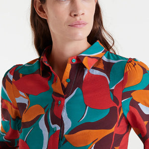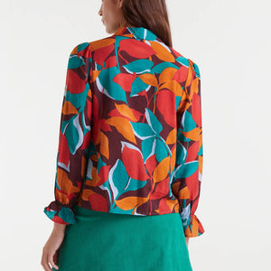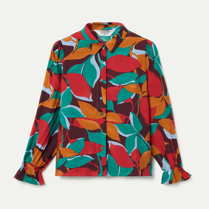 Colletto turn-down, maniche lunghe e polsini elasticizzati con volant.