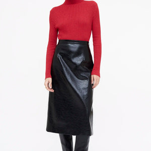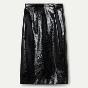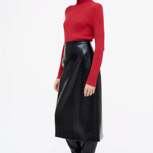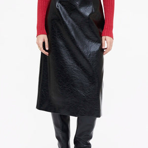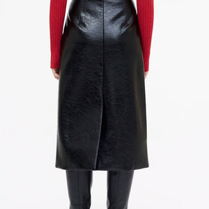 Falda midi en tejido effetto pelle di colore nero.